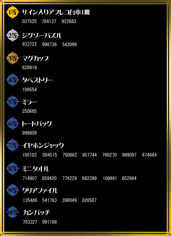 1月6日(日)まで開催しておりました「マギ6」の当選番号を発表いたします!